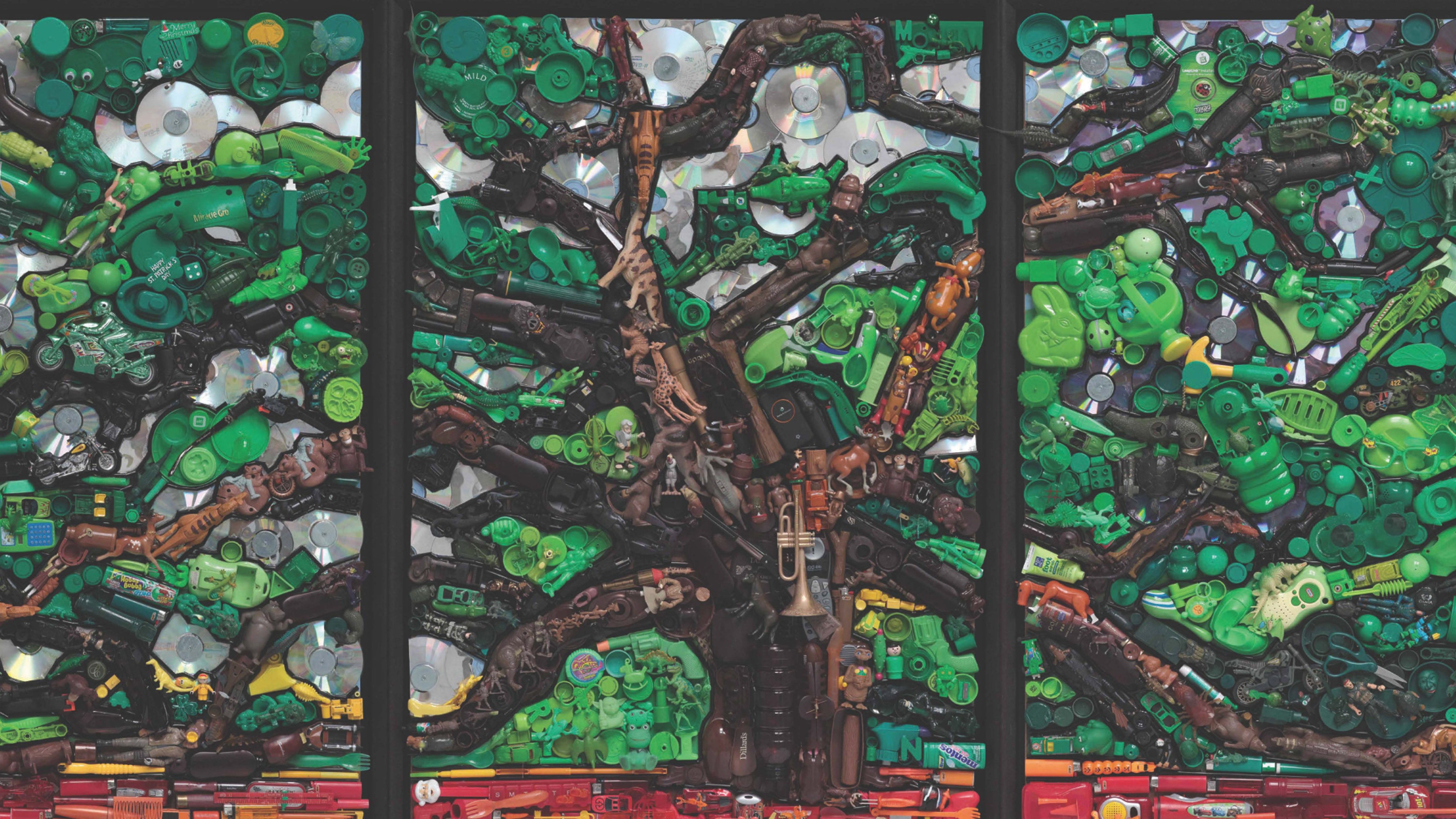For the last 16 years, Kirkland Smith has been collecting everyday disposable objects that have had a life (often very brief!) and are headed to the landfill, upcycling them into contemporary assemblages as an evocative way to drive home the message of environmental responsibility.