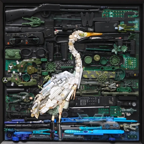 For the last 16 years, Kirkland Smith has been collecting everyday disposable objects that have had a life (often very brief!) and are headed to the landfill, upcycling them into contemporary assemblages as an evocative way to drive home the message of environmental responsibility. Click here to see more work by Kirkland.
